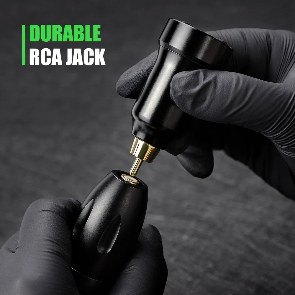 Este compatibilă atât cu mașinile de tatuaj RCA, cât și cu mașinile de PMU cu DC 3.5mm, devenind una dintre cele mai versatile surse wireless din gama Biomaser.